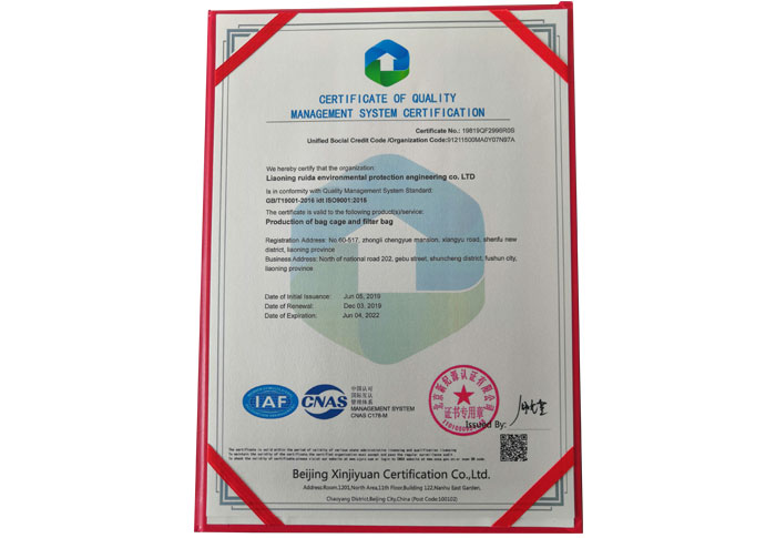遼寧瑞達環保工程有限公司是集設計、制造、安裝、售后服務于一體的大型環保公司。公司位于遼寧省撫順市順城區河北鄉202國道北,距沈吉高速撫順站入口僅一公里,交通十分便利。 公司建筑面積約10000平方米,擁有多臺先進的濾袋、濾布、除塵骨架等設備。近年來公司重視自身建設,打造品牌意識,申請IS9001質量管理體系認證已經通過。 瑞達環保工程有限公司擁有國內先進的全自動袋籠生產線,全自動有機硅噴涂線、濾袋生產線、先進的檢測設備以及專業的技術團隊,產品從設計到生產有著完整的生產體系,全方位保障產品質量品質。 遼寧瑞達環...